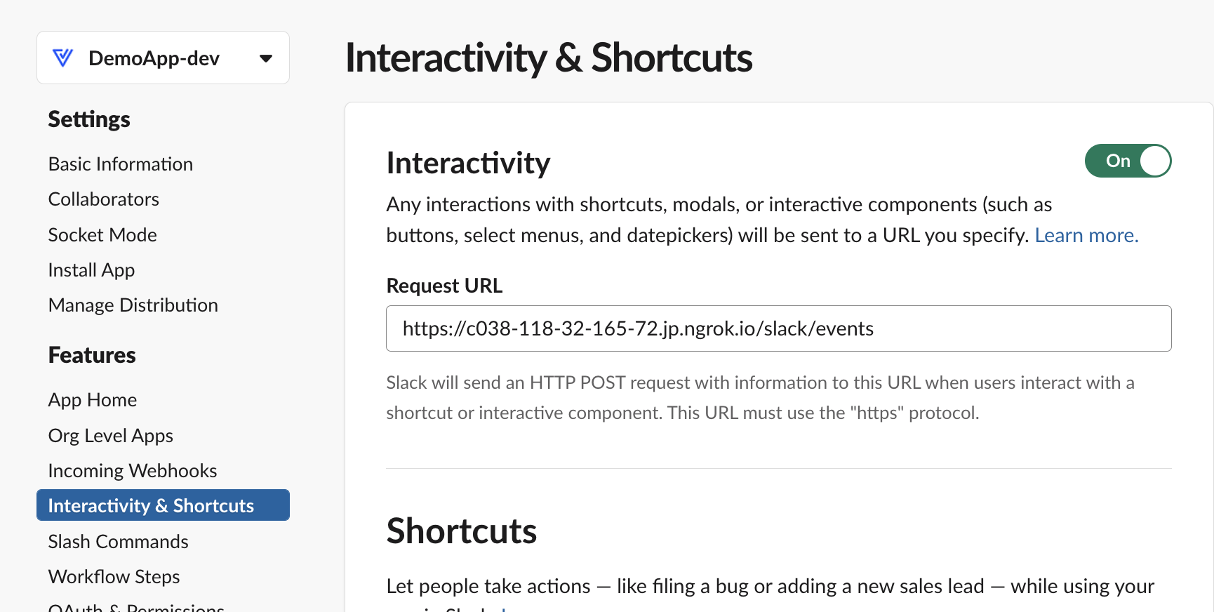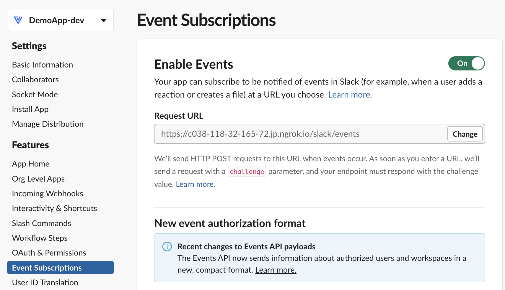 /slack/events를 붙여줘야하는곳은 총 3군데이다.