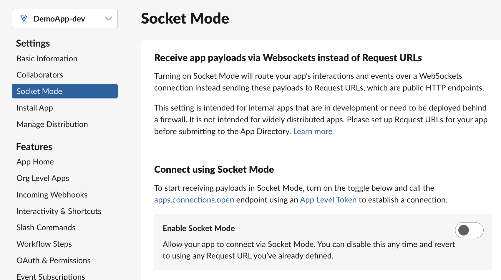 그전에 socket mode를 꺼야함