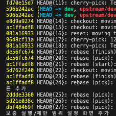 만약 저 커밋중 하나를 다시 살려야하는 상황이라면 커밋ID를 사용해 cherry-pick을 하면된다.